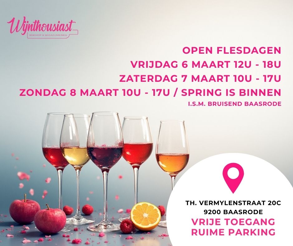 Open Flesdagen ter voorbereiding op de Lente. Kom wanneer het jou past en proef meer dan 40 wijnen. Gratis inkom & proefglazen.