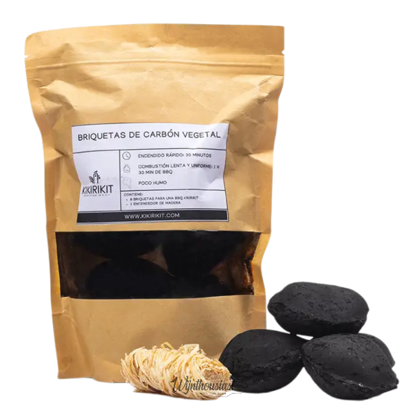 en houtwol aanmaakhout. Alles wat je nodig hebt om je Kikirikit ruim anderhalf uur in gebruik te nemen. Het zakje waar deze kolenset in zit kan op zijn beurt gebruikt worden om afval in te deponeren en het is bovendien hersluitbaar.